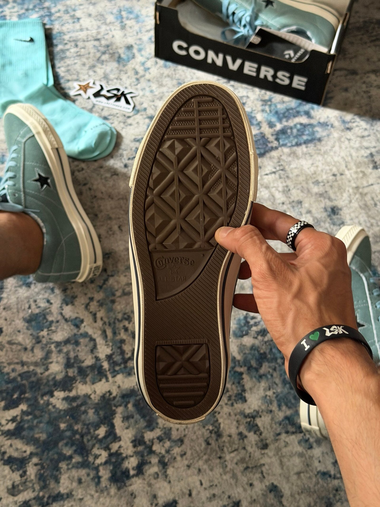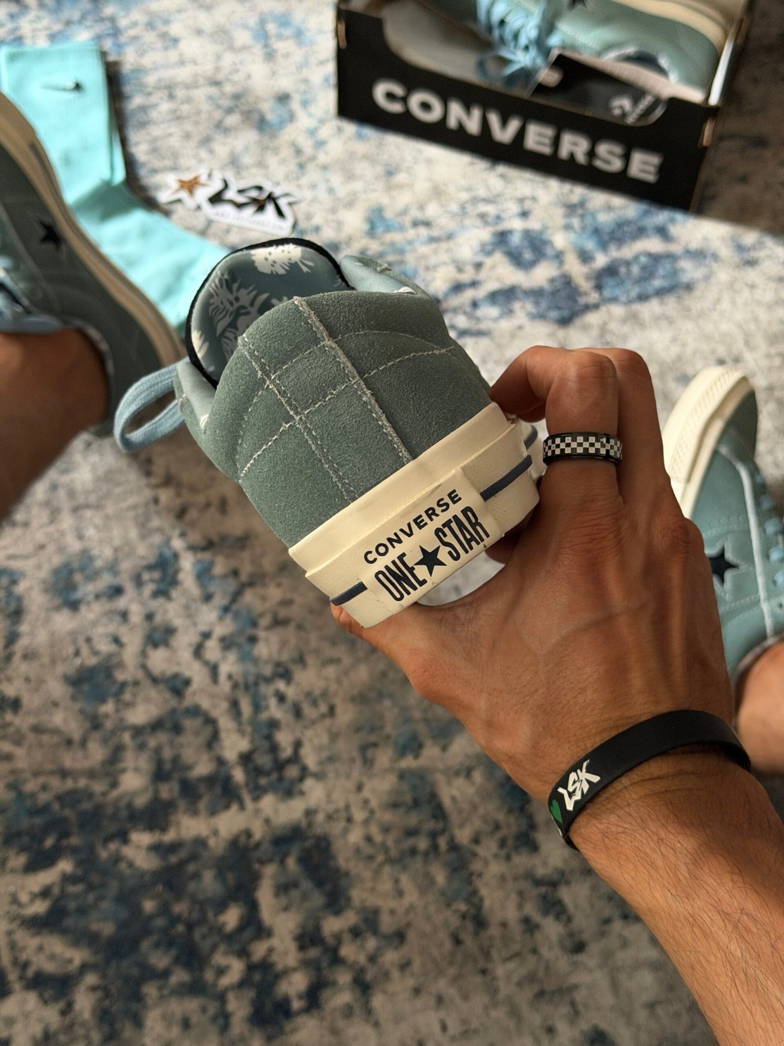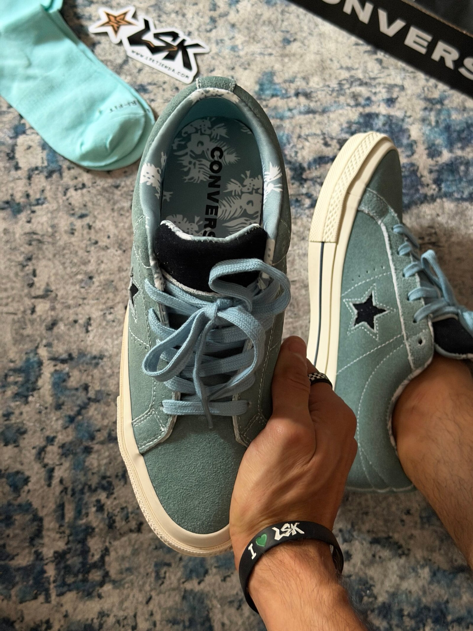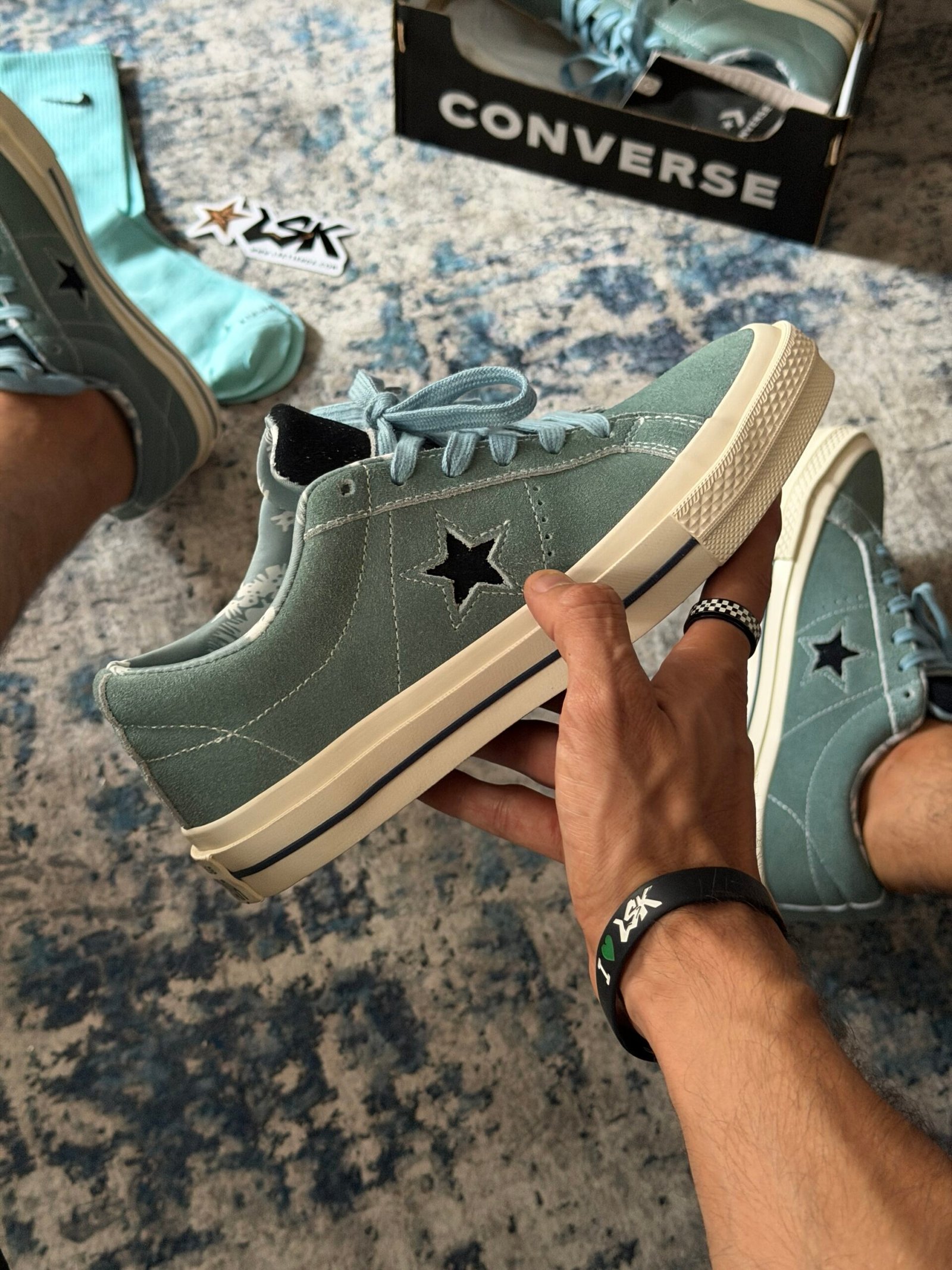 Esta versión en color Aquamarina mantiene toda su esencia clásica con una capellada de gamuza premium, costuras visibles y la estrella lateral blanca que las distingue. Su suela de goma color cafe ofrece agarre y durabilidad, mientras que el interior acolchado garantiza comodidad en cada paso.