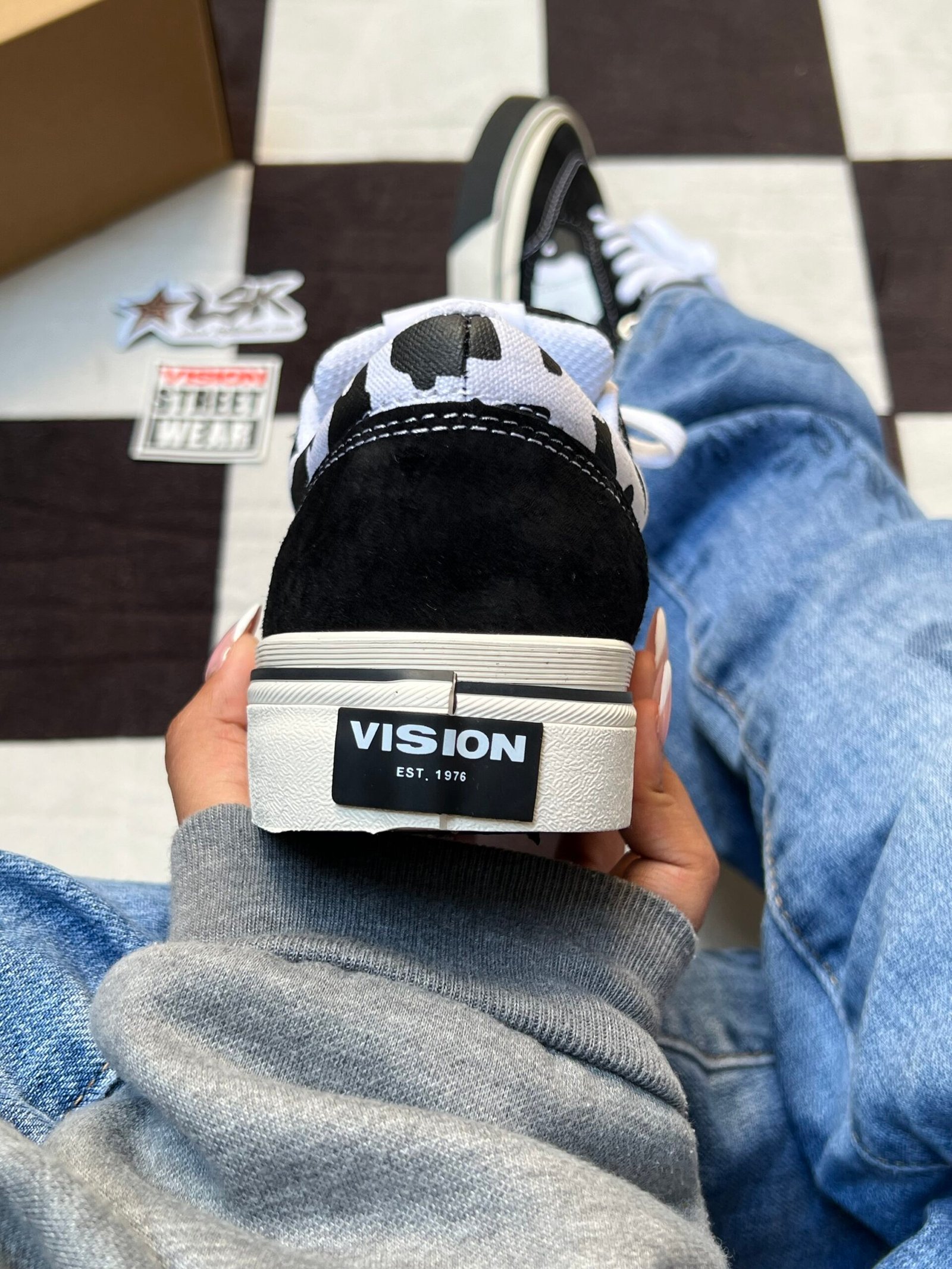 Las Visión Cowprint son el equilibrio perfecto entre estilo llamativo y esencia urbana. Su diseño en animal print tipo manchas de vaca en blanco y negro convierte cualquier outfit básico en una declaración de personalidad. Un modelo pensado para mujeres que no quieren pasar desapercibidas.