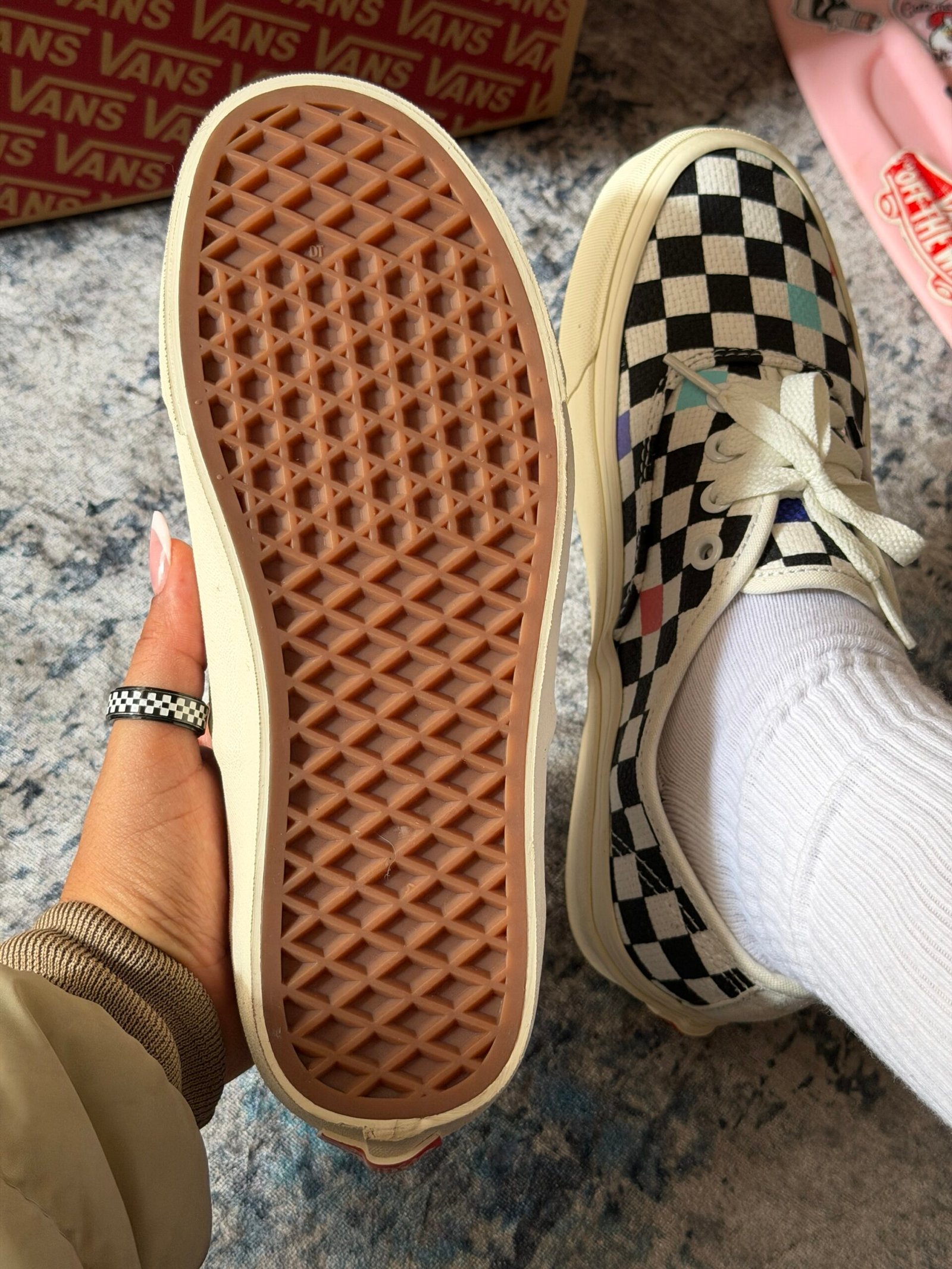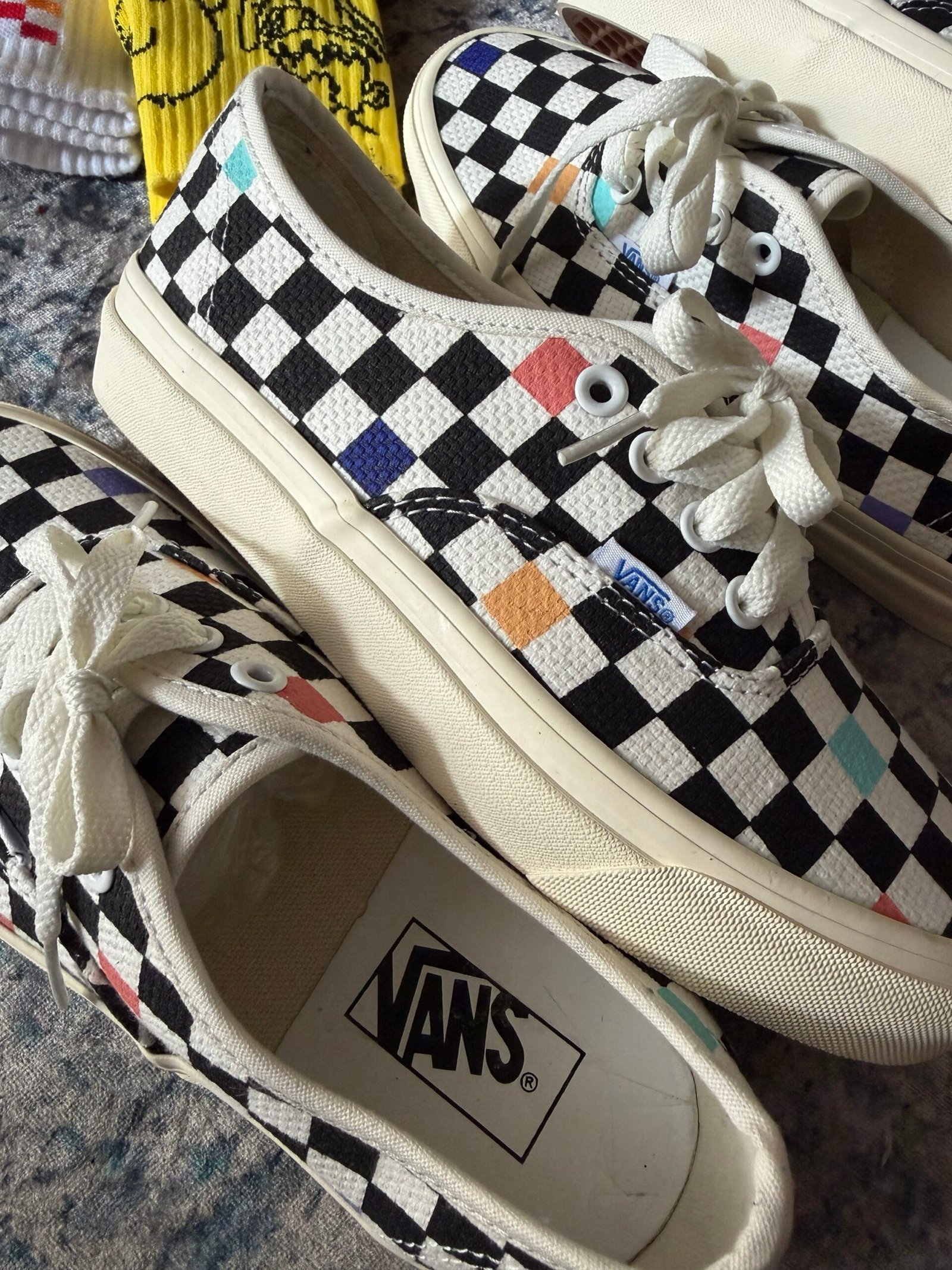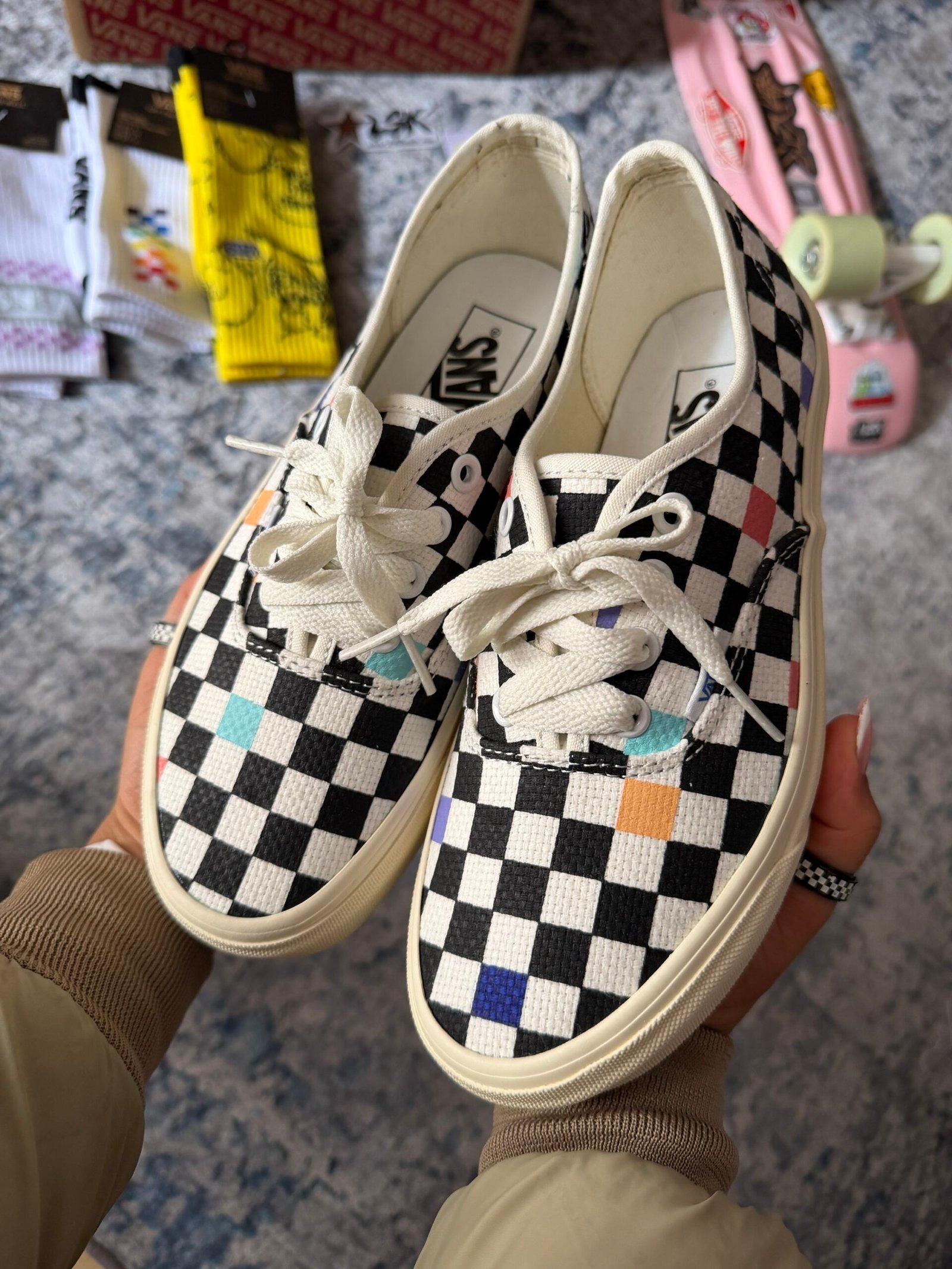 Su capellada presenta el icónico patrón checkerboard blanco y negro, acompañado de detalles de color distribuidos en el diseño, creando un contraste moderno que mantiene la esencia skate de Vans.