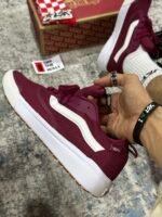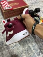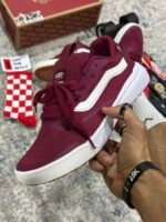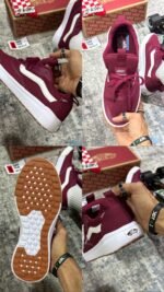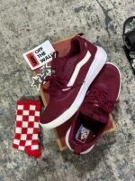 Las Vans UltraRange Surf vinotinto llegan para quienes necesitan comodidad real sin perder estilo. Esta silueta unisex combina un upper en malla respirable, refuerzos sintéticos durables y la icónica Sidestripe blanca. Su entresuela con tecnología UltraCush™ brinda una pisada suave y ligera, ideal para caminar, viajar, trabajar o moverse todo el día.